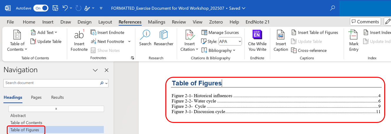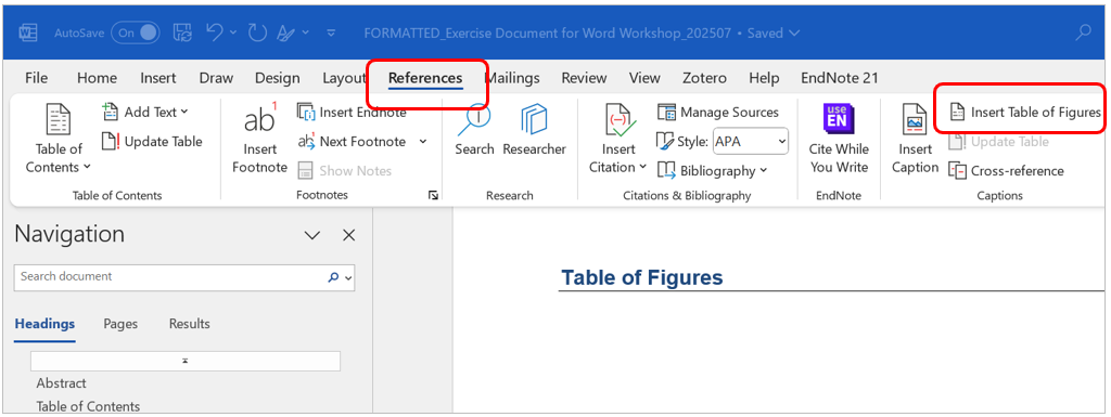 - Navigate to the place where you want the Table of Figures to appear in your document.