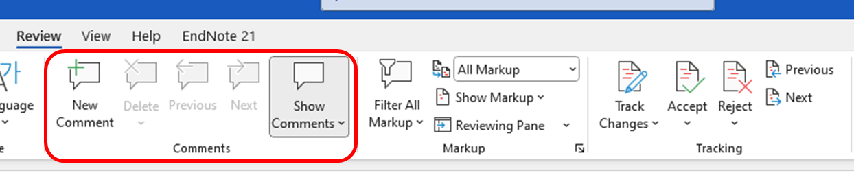 The comments function within the Review tab enables authors to add notes, comments, suggestions or reminders to selections of text. Comments enable authors to discuss and work collaboratively on a single document. Comments can be tagged to a particular person for attention, responded to, and deleted from the document as required.