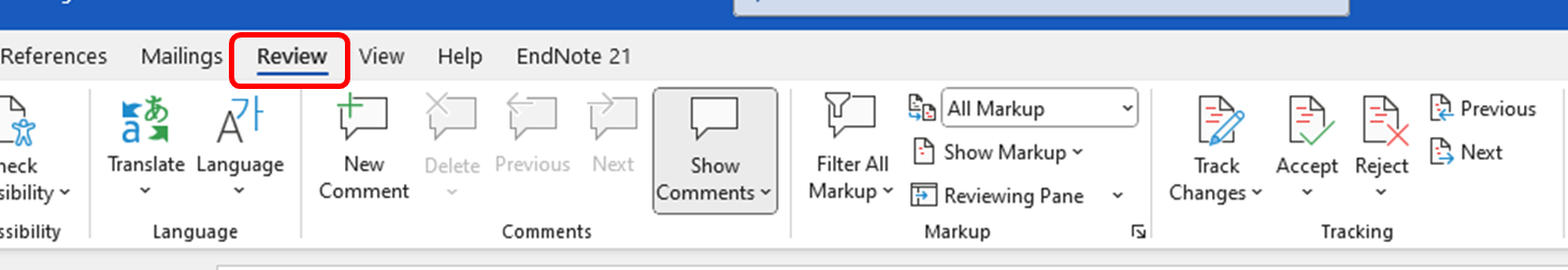 The Review tab in Word enables users to work collaboratively with other authors on a Word document and to keep track of the changes they make to their own documents.
